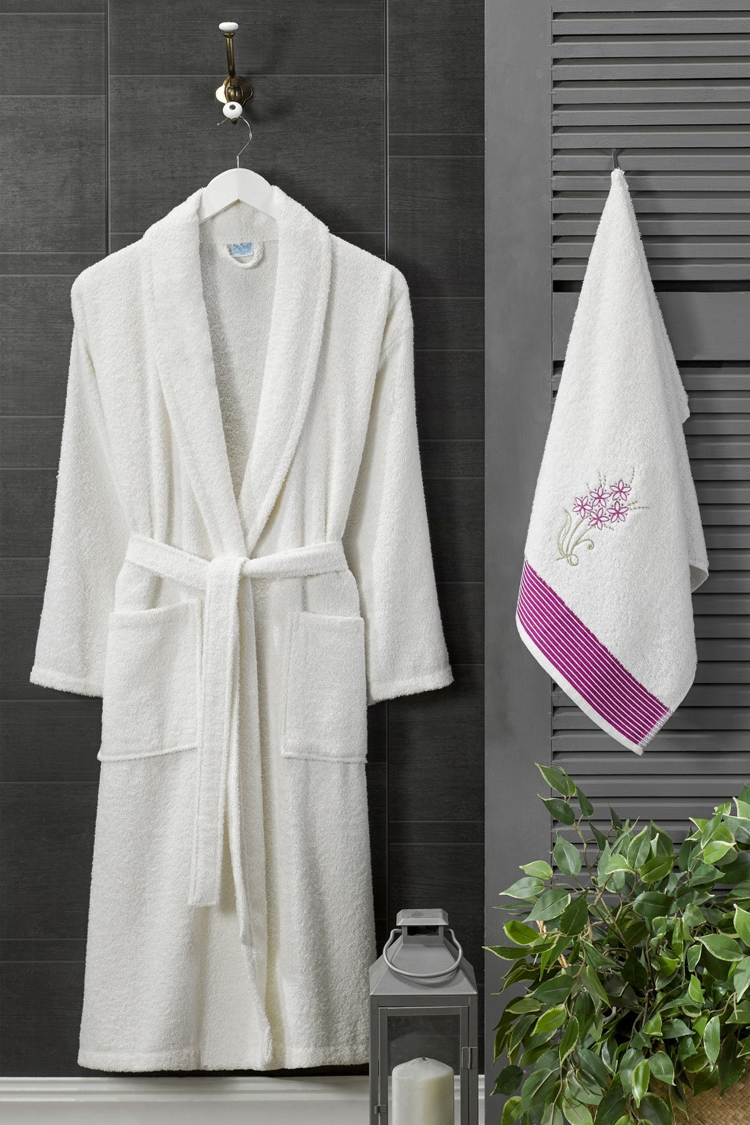 set halat de baie cu prosop DRONEIFA WHITE