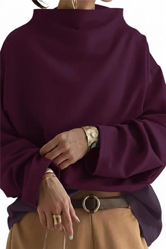 - Bluza are mâneci lungi, o croială elegantă oversize și un guler de tip polo stilat.