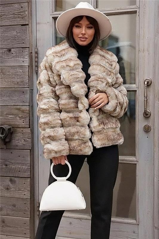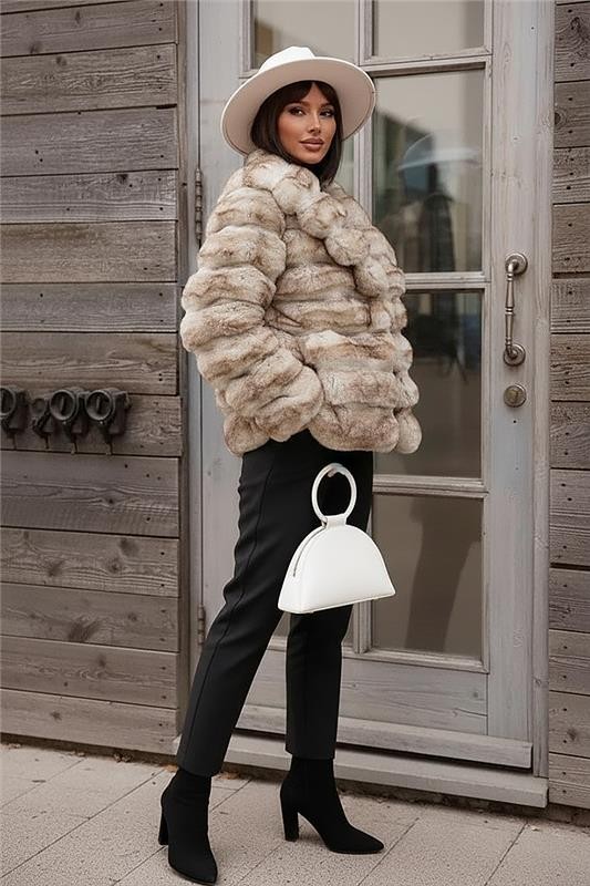 - Paltonul este confecționat din blană ecologică, care garantează confortul termic.