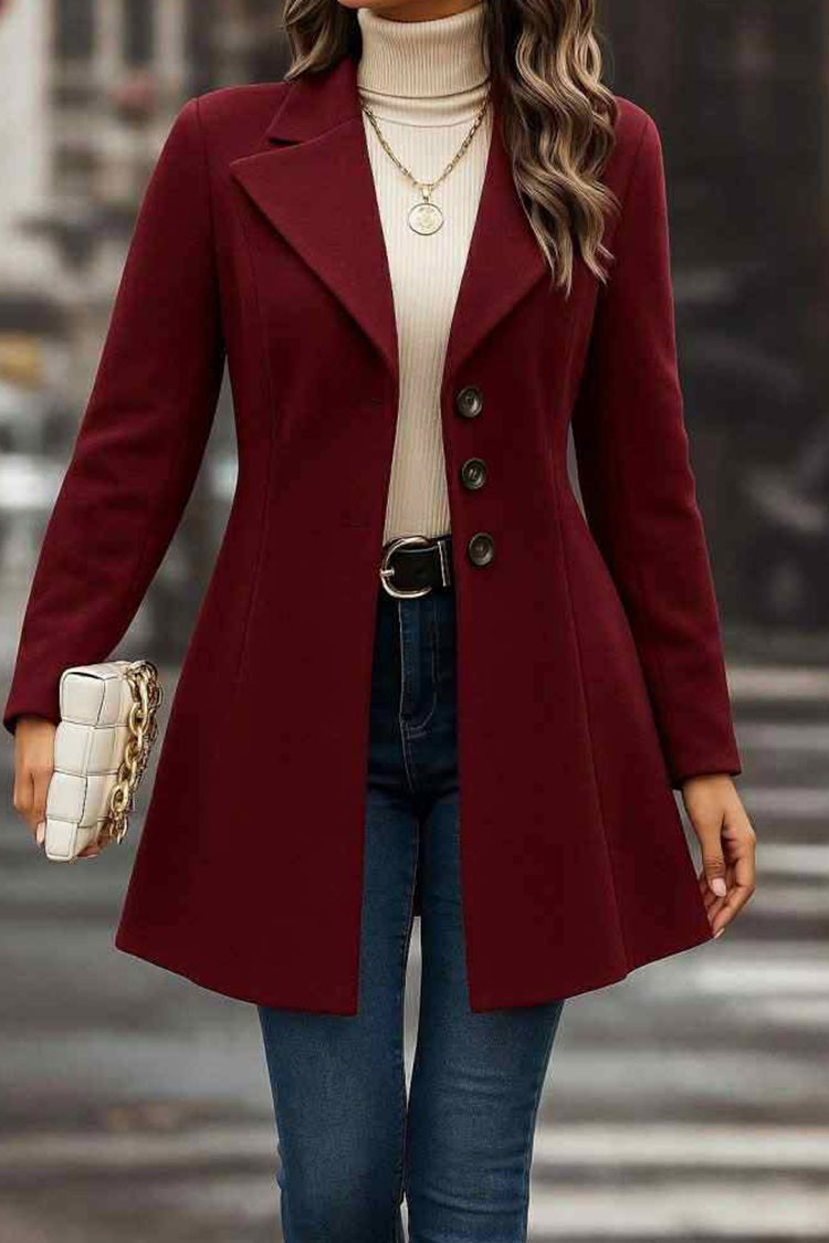 - Modelul monocromatic are guler clasic și nasturi în față.