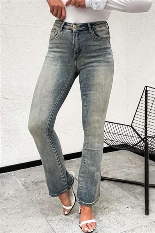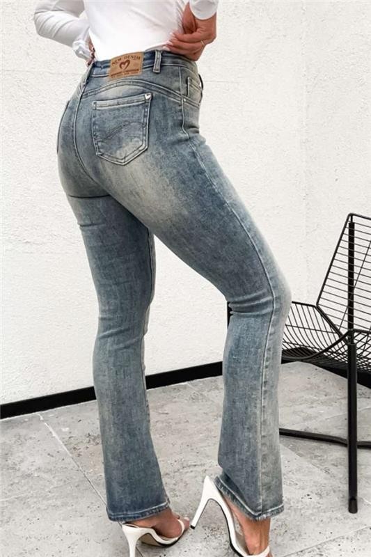 - Modelul are talie înaltă și o croială precisă și un efect decolorat modern.