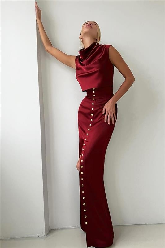 - Recomandăm să o combinati cu tocuri înalte și o geantă mică de mână.