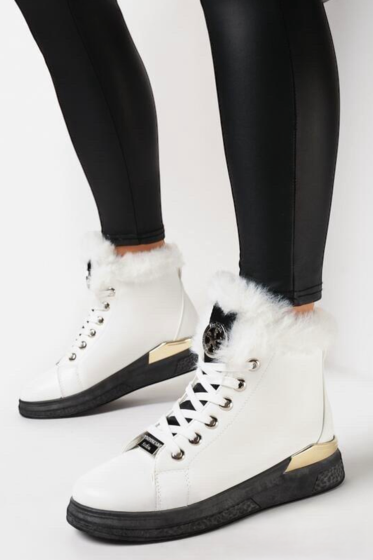 - Pășește cu îndrăzneală cu aceste botine remarcabile, confecționate din piele ecologică cu puf.