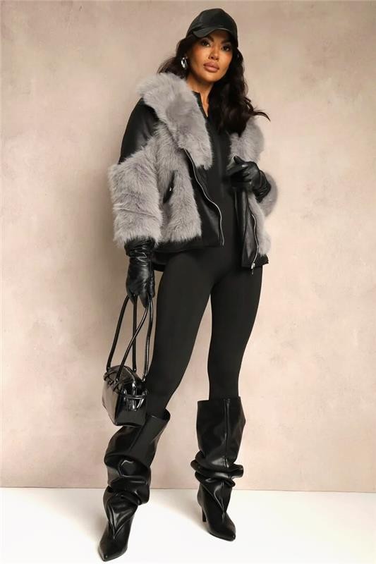 - Geaca este confecționată din blană ecologică, care garantează confort termic.