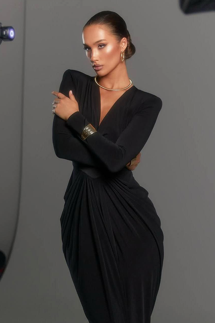- Pentru a atrage toate privirile, alege această rochie lungă cu un design incredibil, într-o culoare clasică.