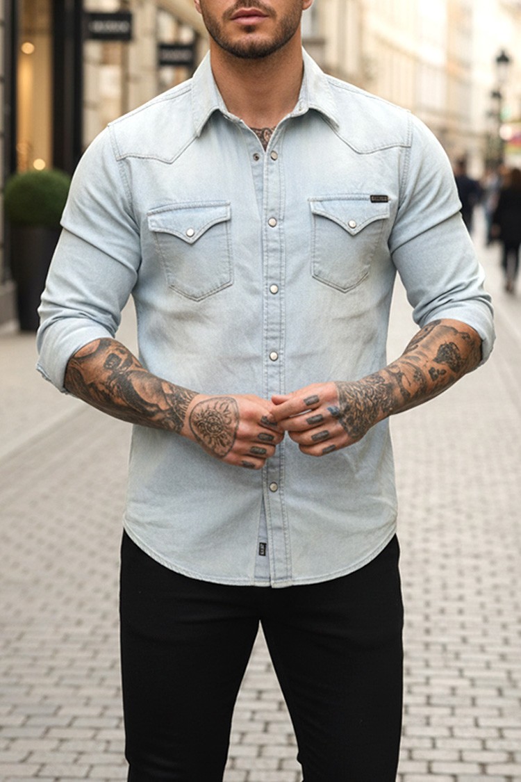 - Confecționată din denim moale de bumbac, cu croială lejeră, potrivită pentru orice siluetă. Modelul are cusături elegante care accentuează linia cămășii.