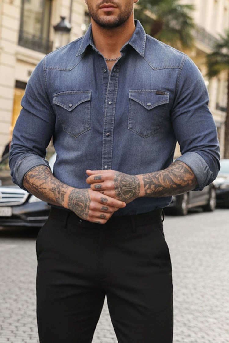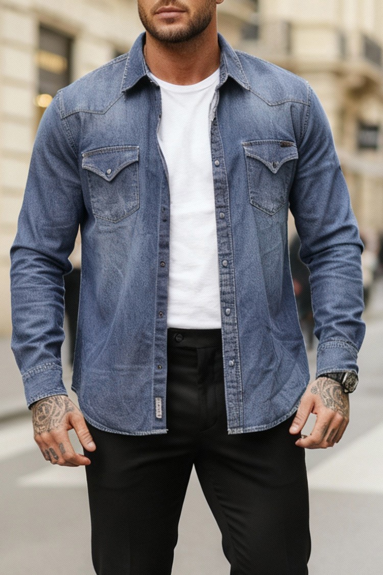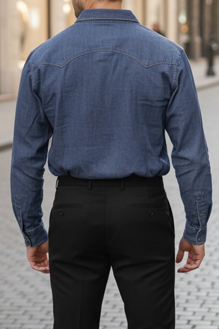 - Confecționată din denim moale de bumbac, cu croială lejeră, potrivită pentru orice siluetă. Modelul are cusături elegante care accentuează linia cămășii.