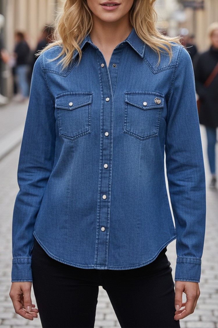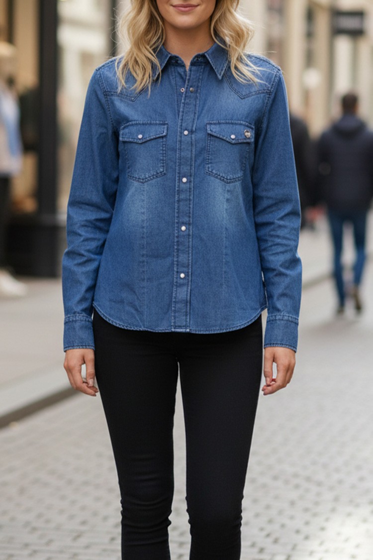 - Confecționată din denim moale de bumbac, cu o croială lejeră, potrivită pentru orice siluetă. Modelul are cusături elegante care accentuează linia cămășii.