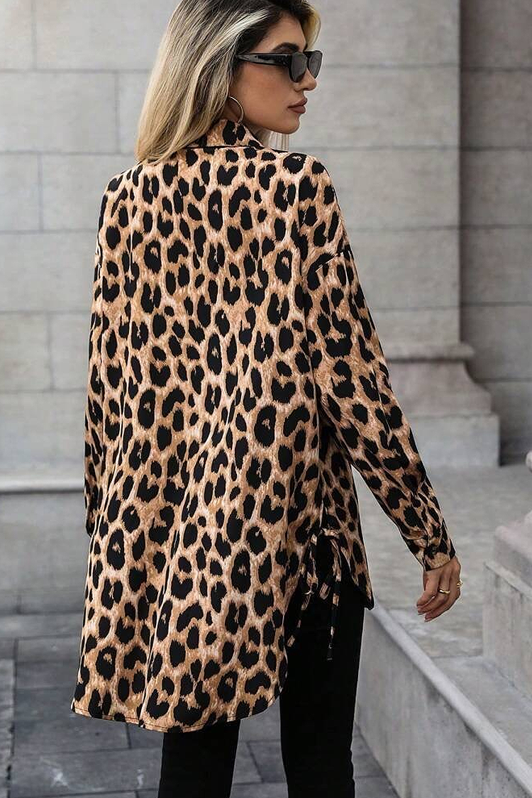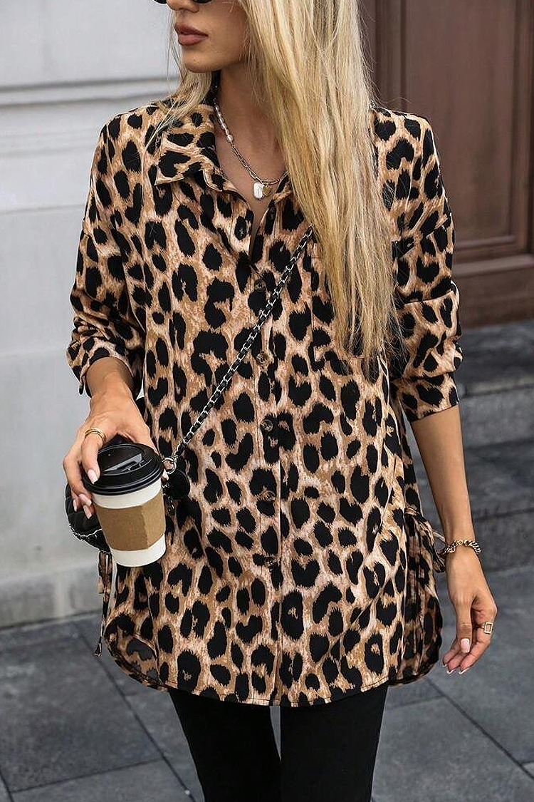 - Modelul are animal print, închidere standard cu nasturi și o croială oversize.