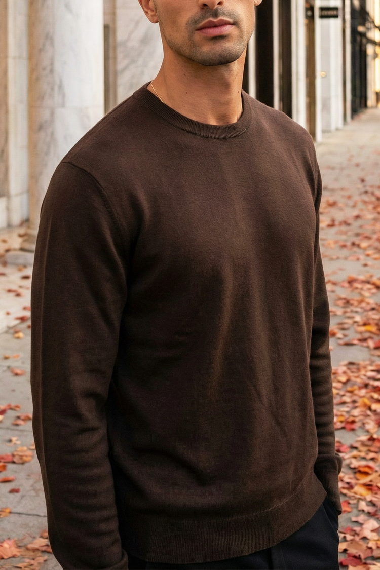 - Pulover pentru bărbăti model basic, cu decolteu rotund, potrivit ca o completare la ținuta de zi cu zi.