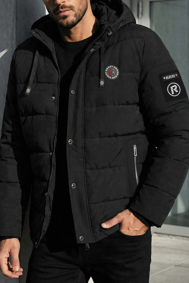 - Geacă de iarnă pentru bărbăti, practică și călduroasă, cu buzunare, care combină confortul cu designul urban modern.