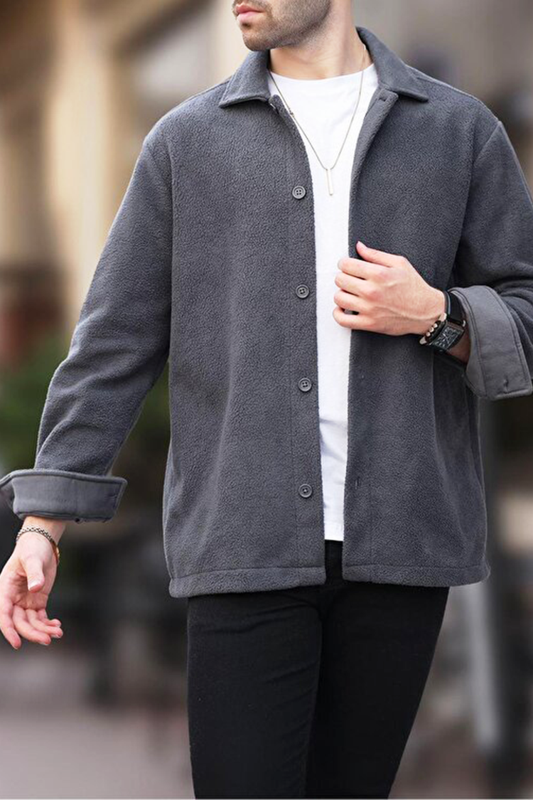 - Cămașă pentru bărbăti confortabilă, cu un design curat, de culoare grafit, potrivită pentru diverse combinații de modă.