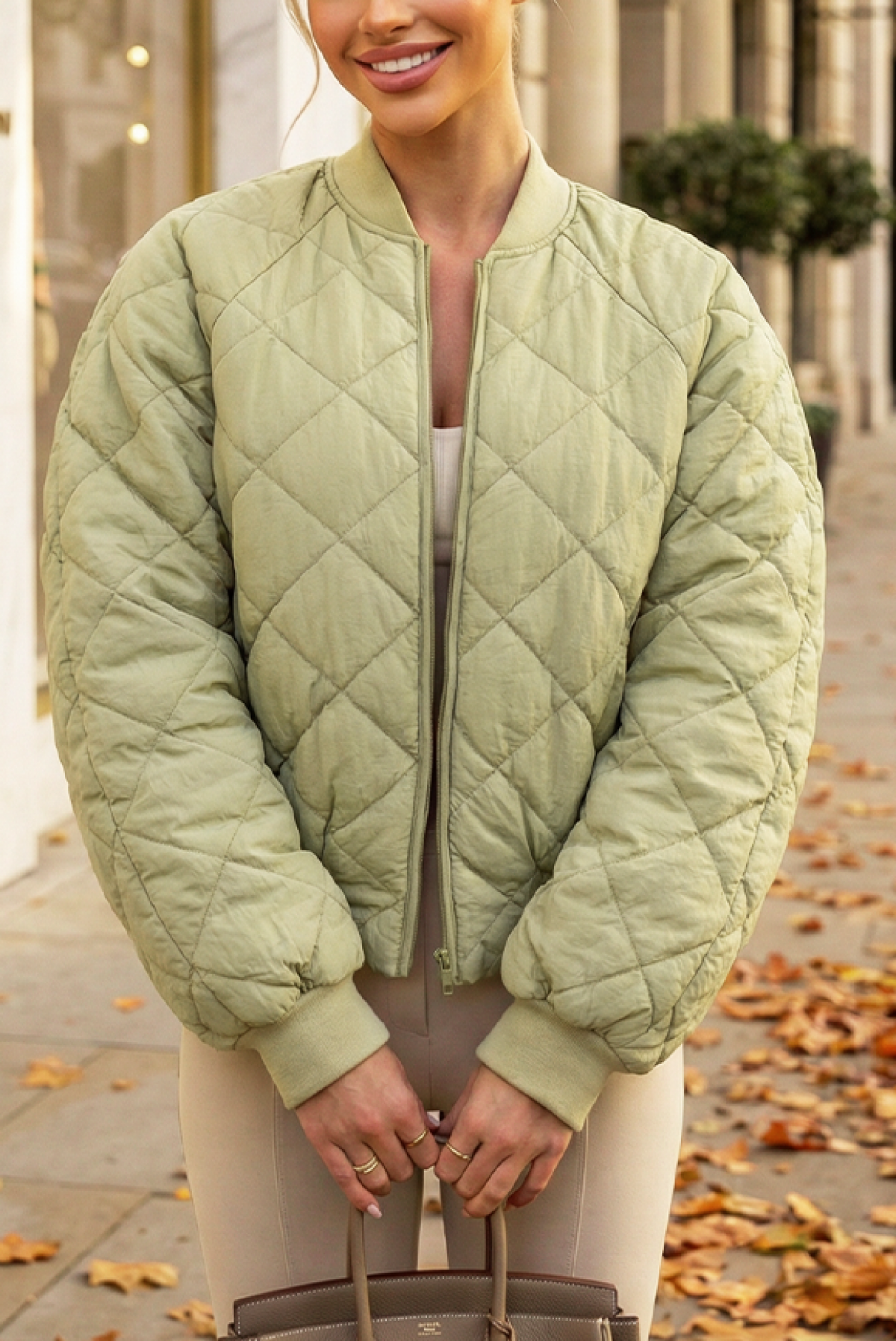 - Modelul are un design matlasat, o croială confortabilă și se închide cu fermoar.