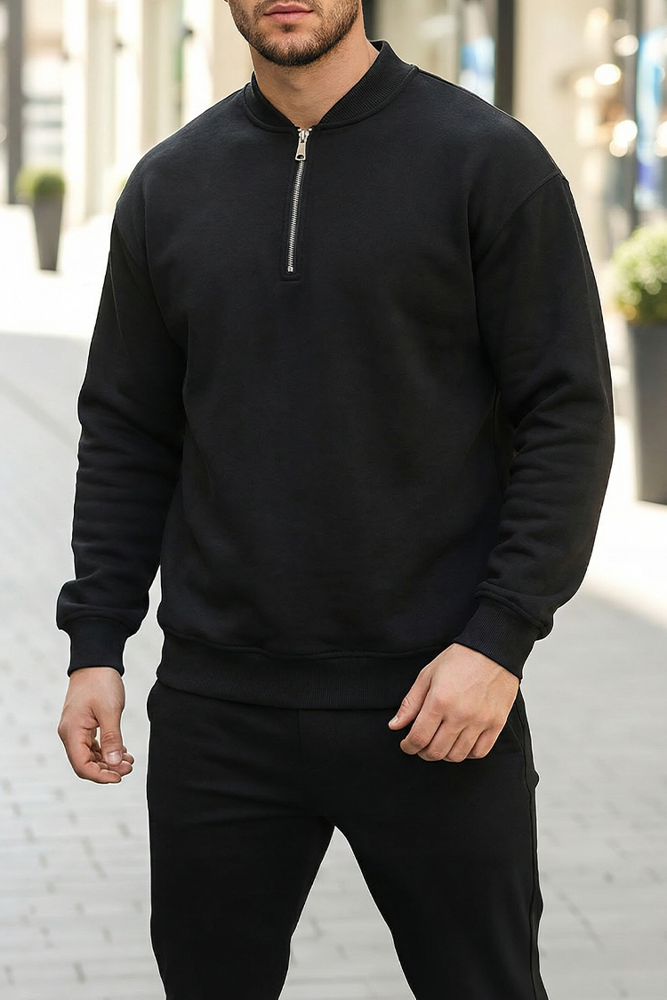 - Creează un look modern cu această bluză practică, cu decolteu cu fermoar și mâneci lungi, de culoare neagră.
