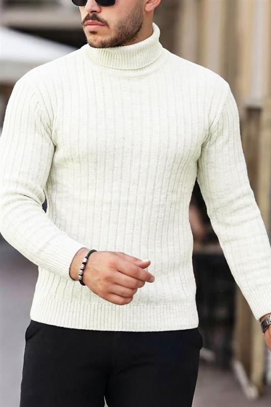 - Pulover pentru bărbăti confortabil, cu guler de tip polo și model de culoare ecru, potrivit pentru diverse combinații vestimentare.