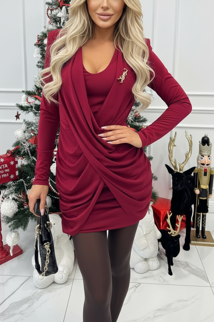 - Modelul are o croială mulată, lungime scurtă, decolteu sexy, mâneci lungi și o secțiune spectaculoasă.