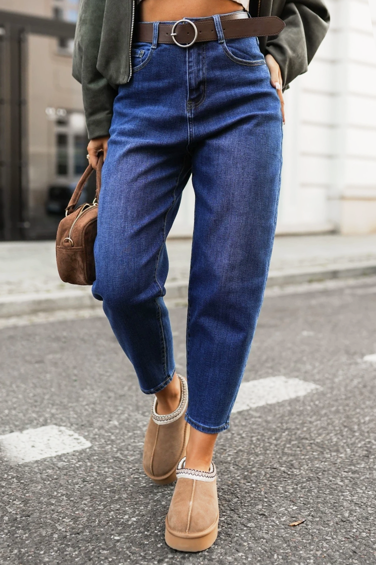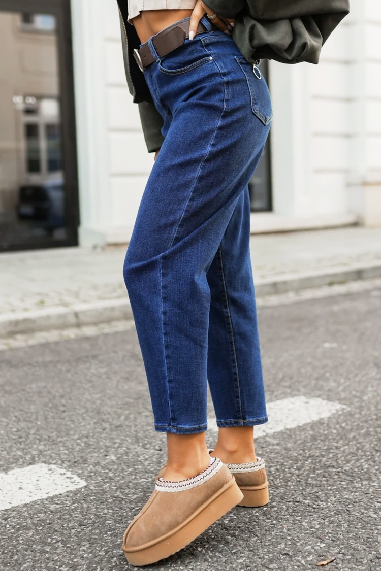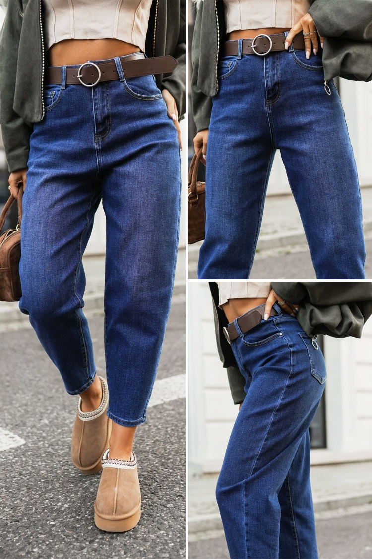 - Model basic blugi de damă, de culoare albastru închis potriviți pentru viața de zi cu zi sau pentru plimbări.