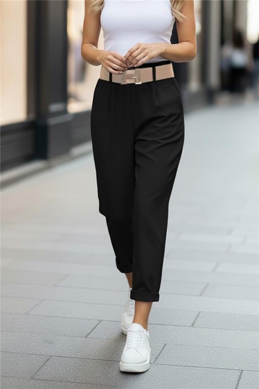 - Pantaloni clasici de damă, potriviți pentru ținute la modă de zi cu zi.