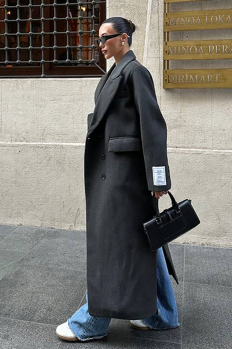 - Alege acest palton lung cu un design modern, potrivit pentru diverse combinații de modă.