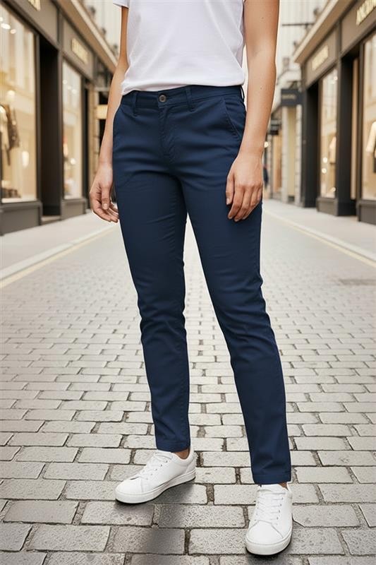 - Blugi de damă model basic, de culoare albastru închis, potriviți pentru viața de zi cu zi sau plimbări.