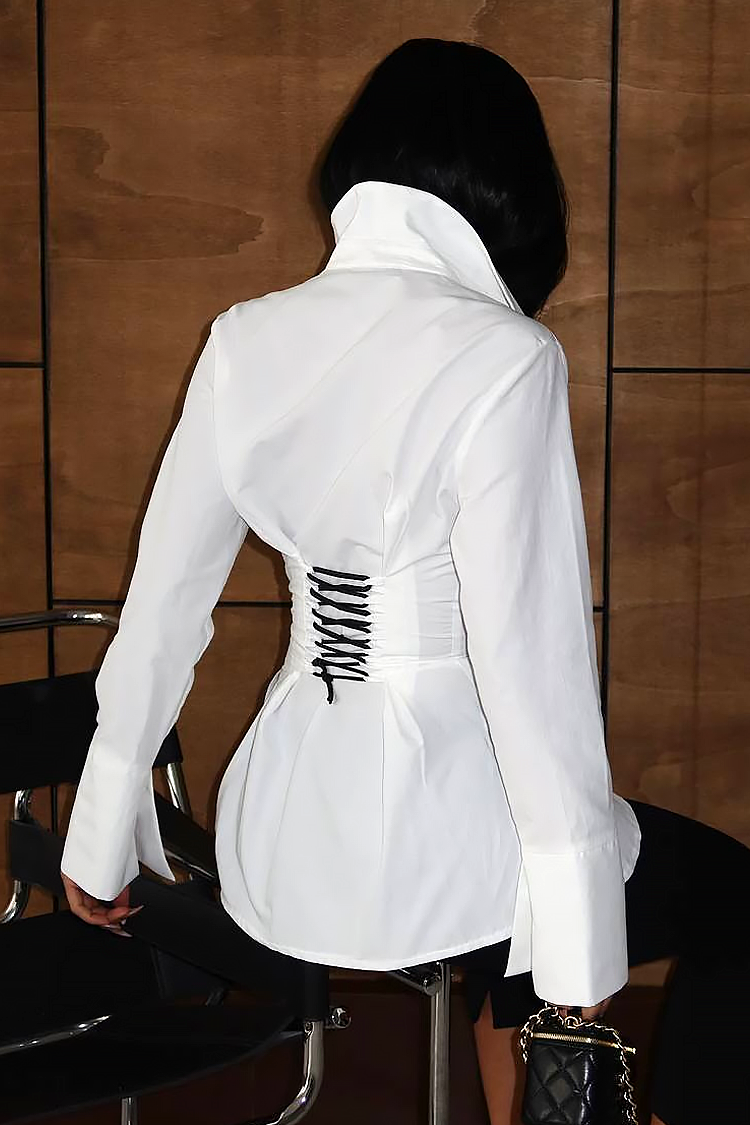 - Modelul are o croială mulată și atractivă, guler, detalii pe față și legături pe spate.