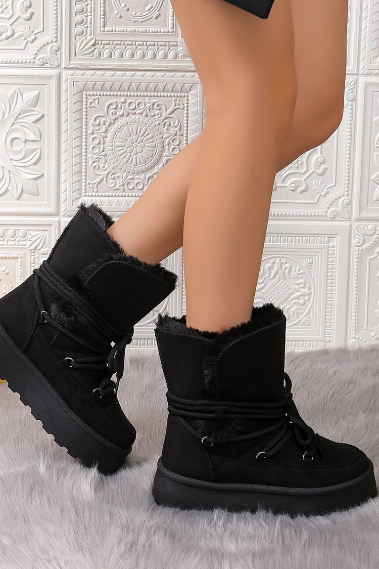- Apreschiuri calde de dama confecționate din țesătură impermeabilă, decorate cu blană ecologică pufoasă de culoare neagră.
