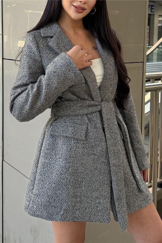 - Combină stilul cu confortul! Modelul are o croială clasică, nasturi, buzunare și o curea din același material.