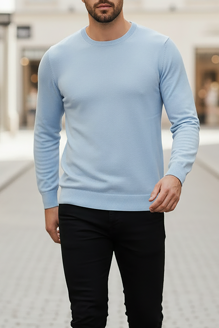 - Pulover pentru bărbăti model basic cu decolteu rotund, potrivit ca o completare la ținuta de zi cu zi.