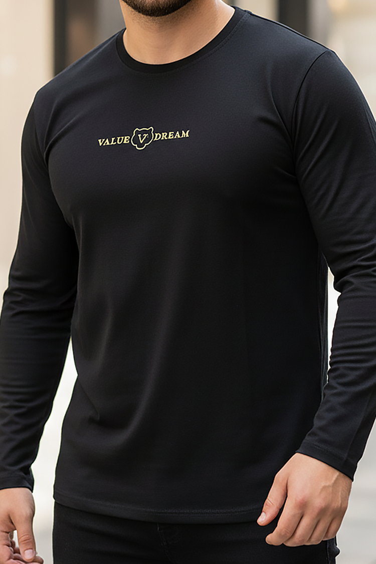 - Bluză pentru bărbați practică, cu decolteu rotund, mâneci lungi și inscripție, potrivită pentru viata de zi cu zi.