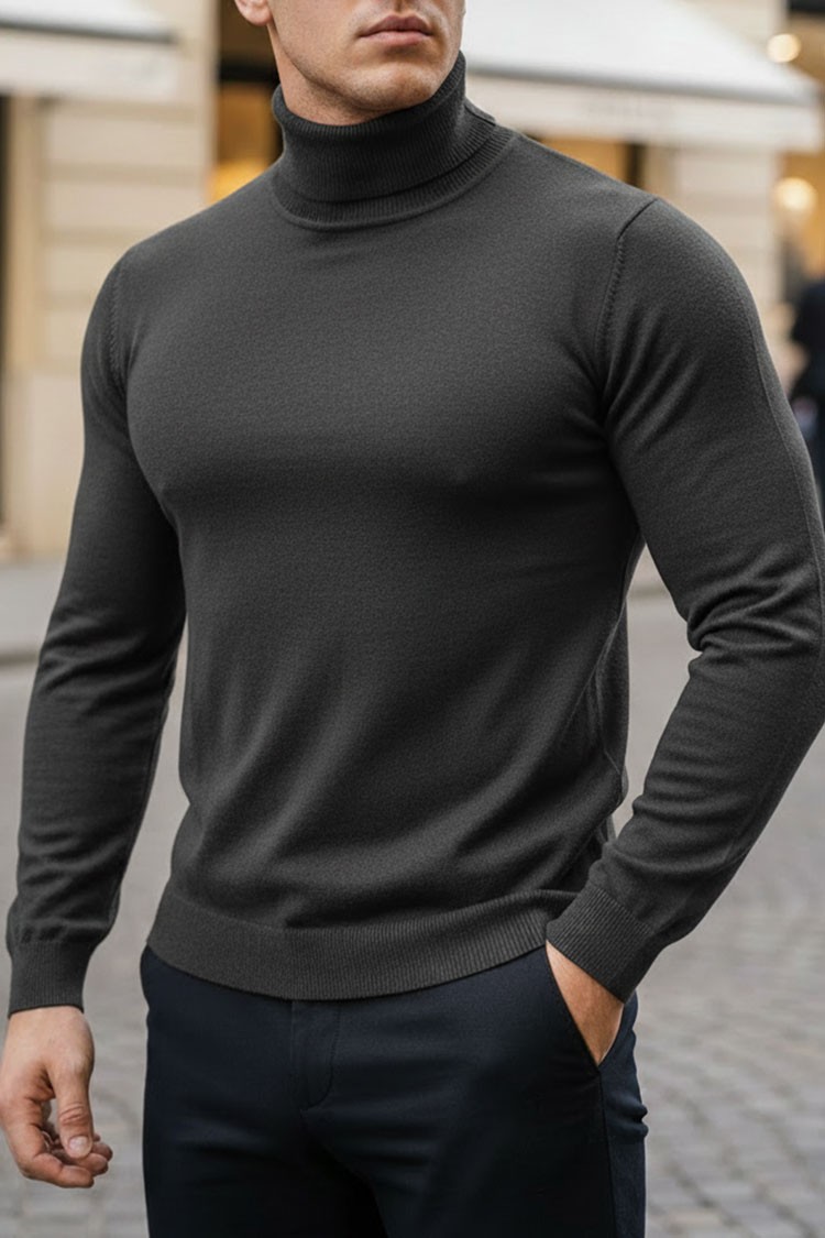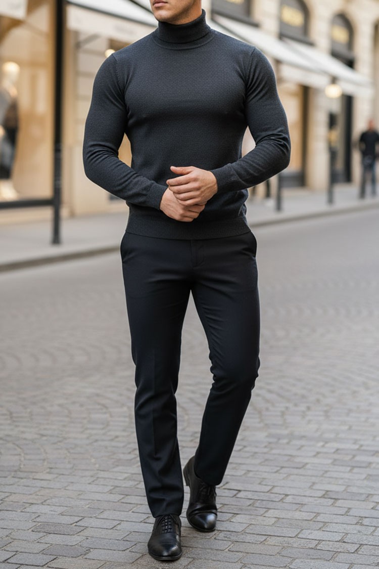 - Pulover elegant pentru bărbăti cu guler de tip polo și croială mulată, de culoare grafit.