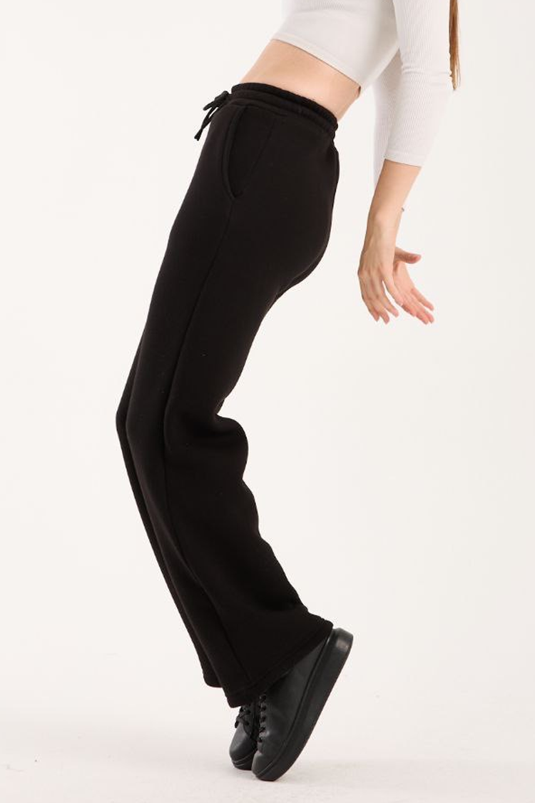 - Modelul are talie înaltă și elastică, buzunare laterale, legături. și picioare late.