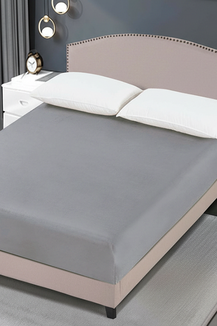 - Cearșaf cu elastic de culoare gri, cu dimensiunil 200x220 cm, un model extrem de curat și funcțional.
