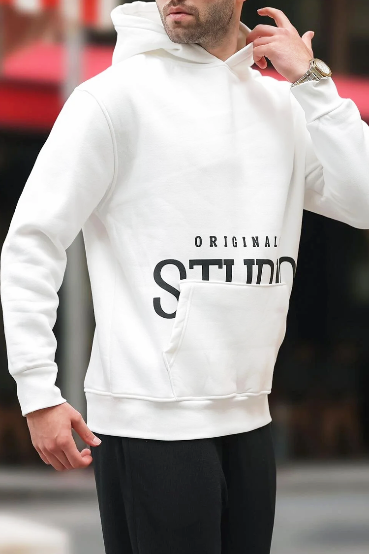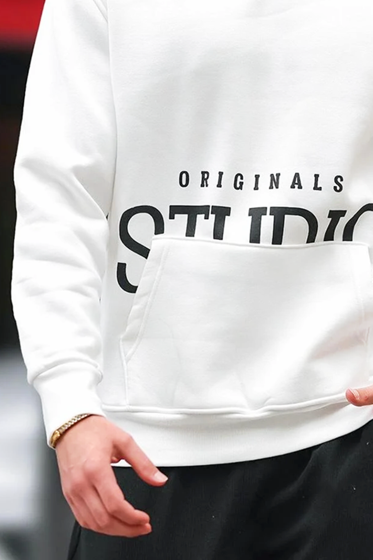 - Hanorac practic pentru bărbați, cu imprimeu potrivit pentru viața de zi cu zi sau pentru o plimbare.