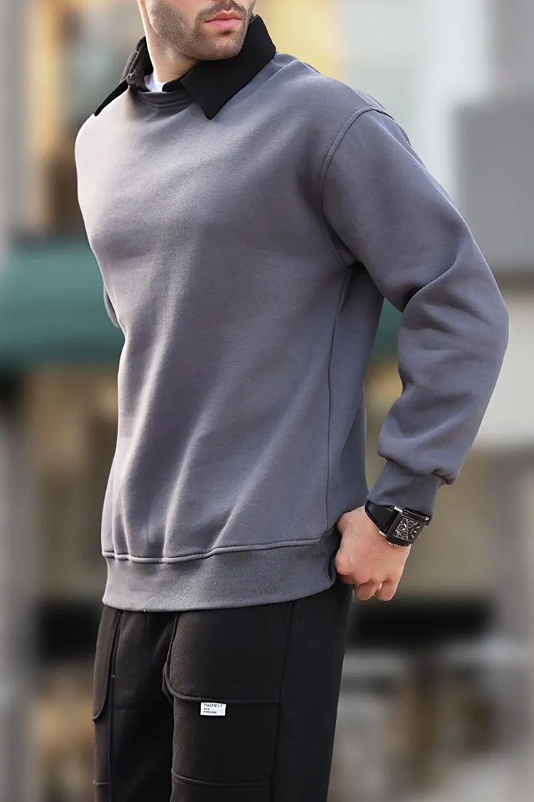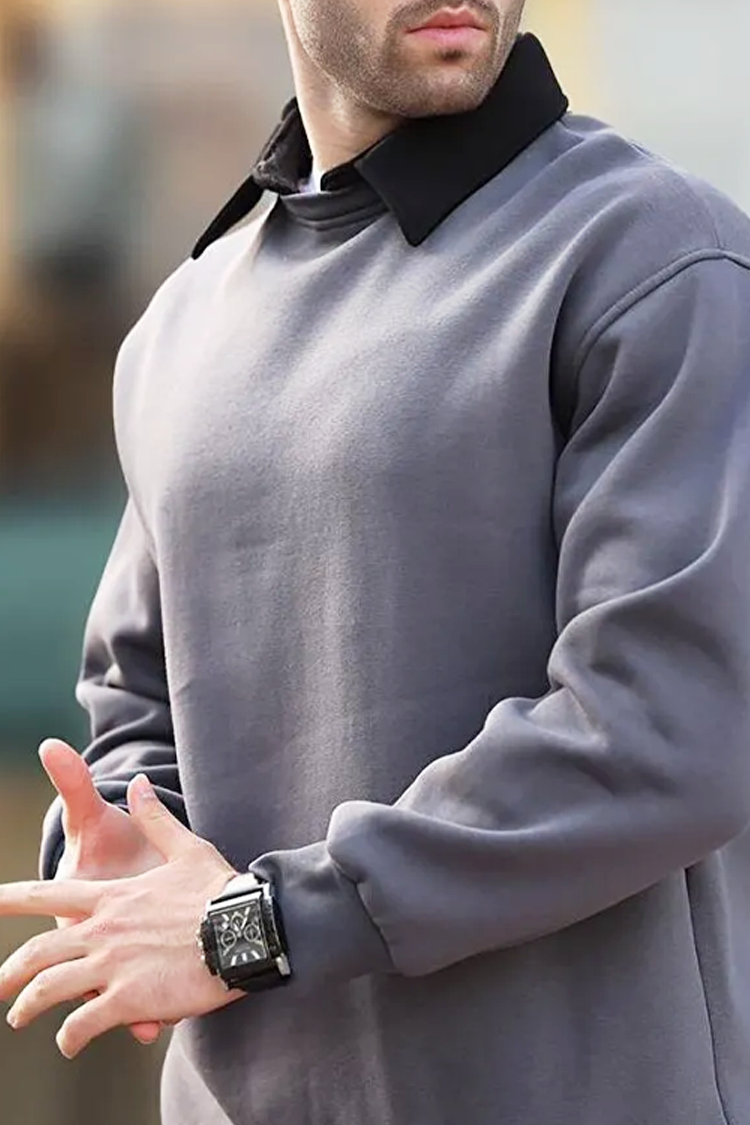 - Hanorac pentru bărbăti elegant și eficient, cu guler contrastant și croială universală.