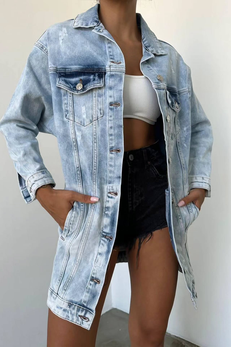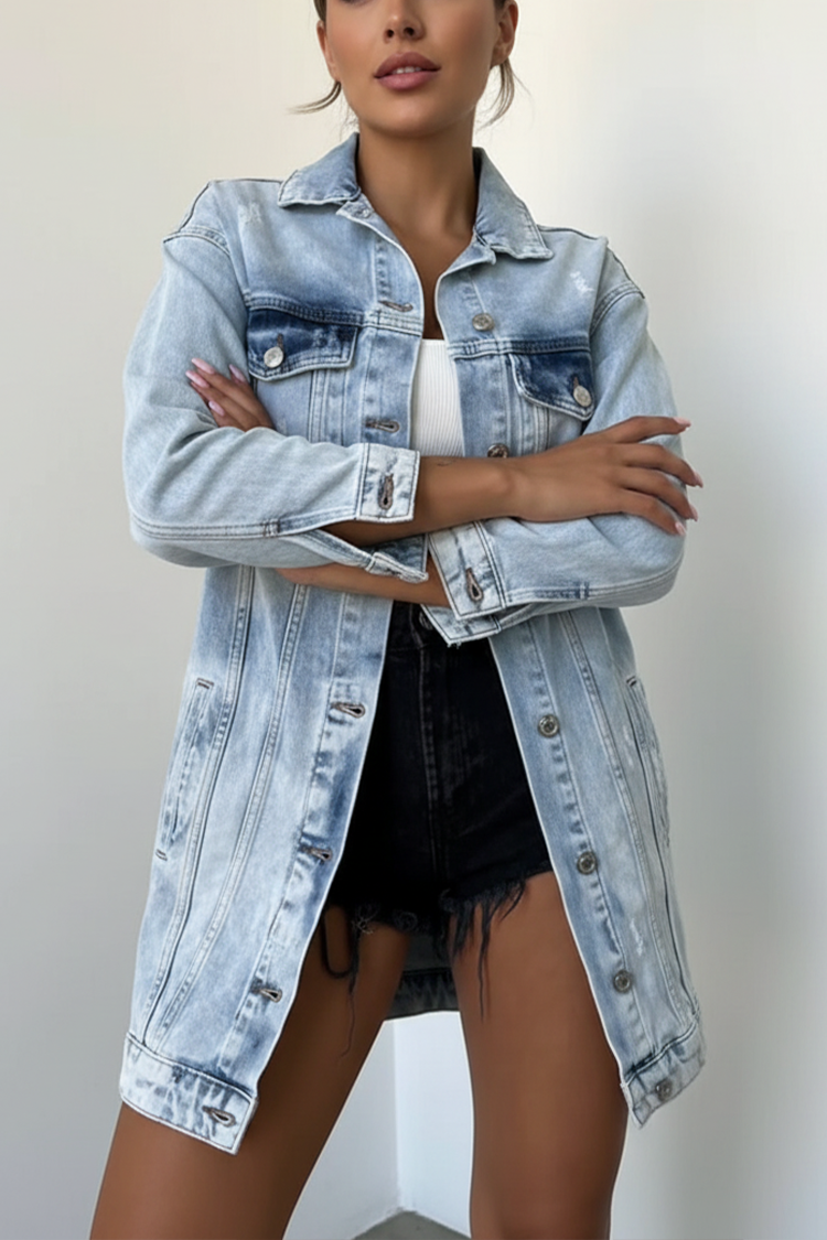 - Pentru un look elegant, alege această geacă din denim, potrivită pentru orice look.