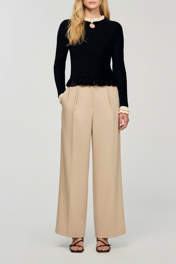 - Bluză elegantă de damă, care combină negrul clasic cu accente delicate de bej.