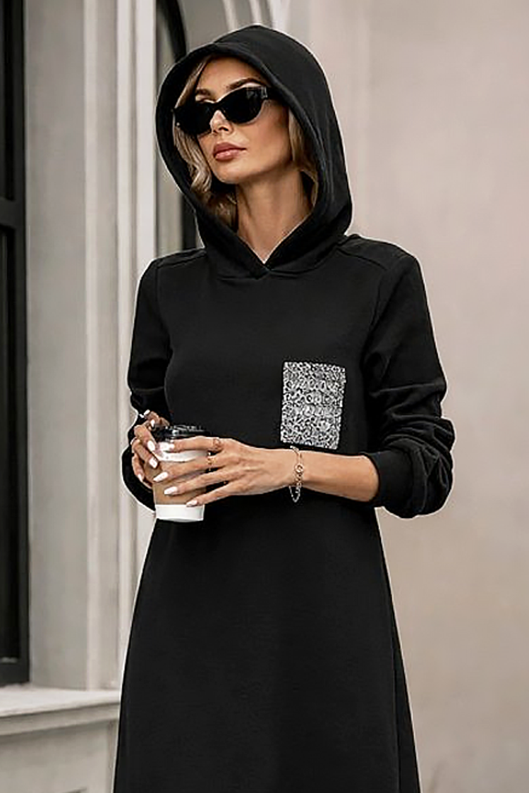 - Modelul are o croială confortabilă și o glugă practică.