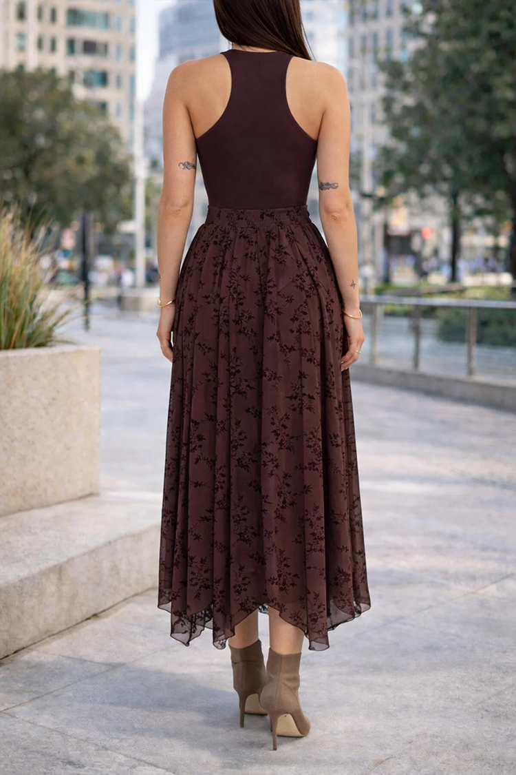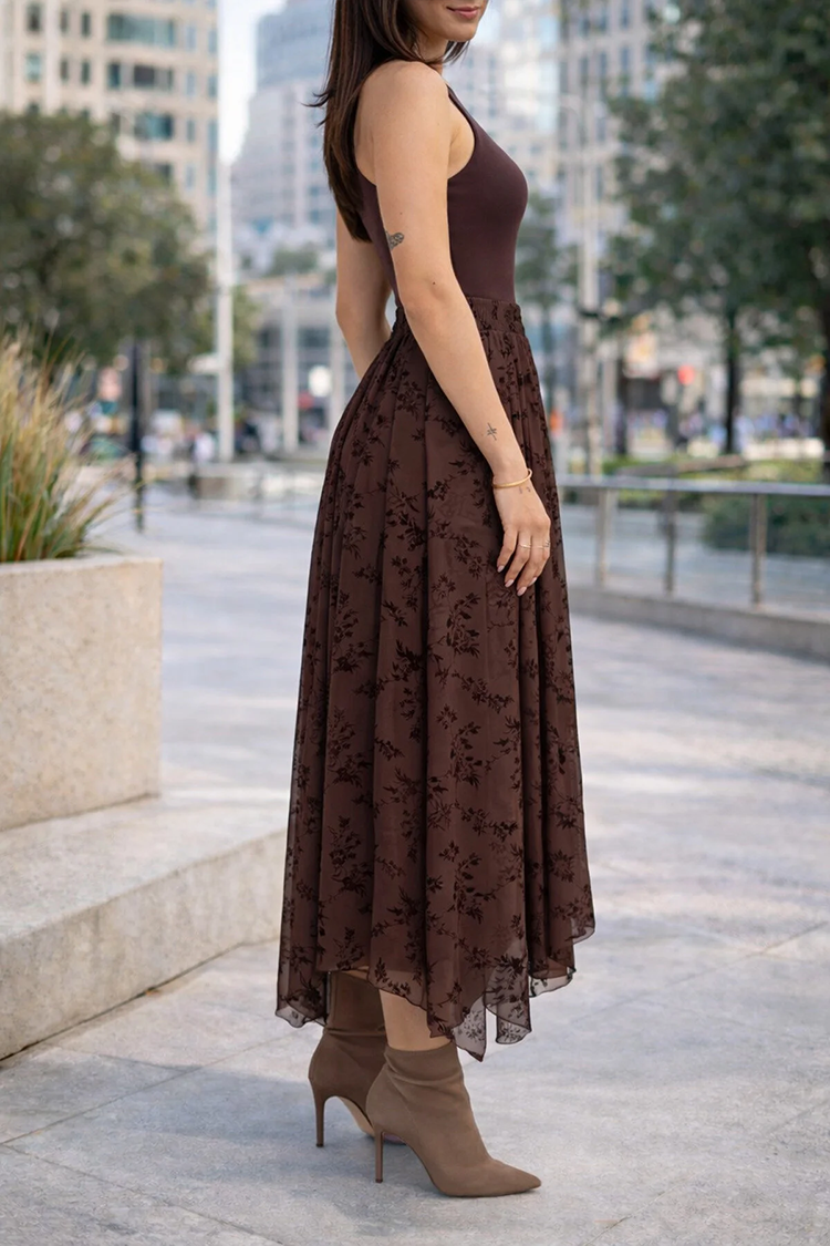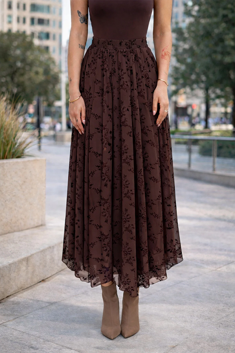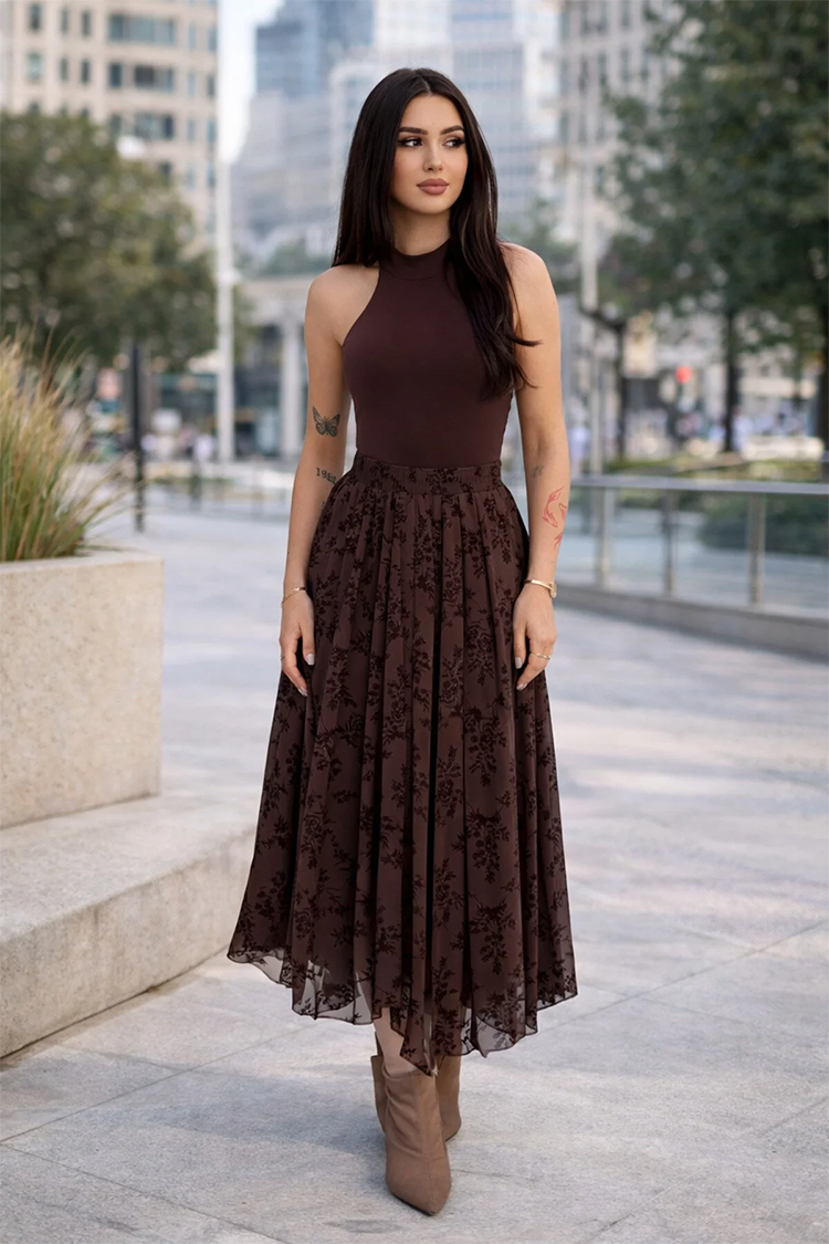 - Fustă modernă de culoare maro, potrivită pentru diverse ținute de zi cu zi.
