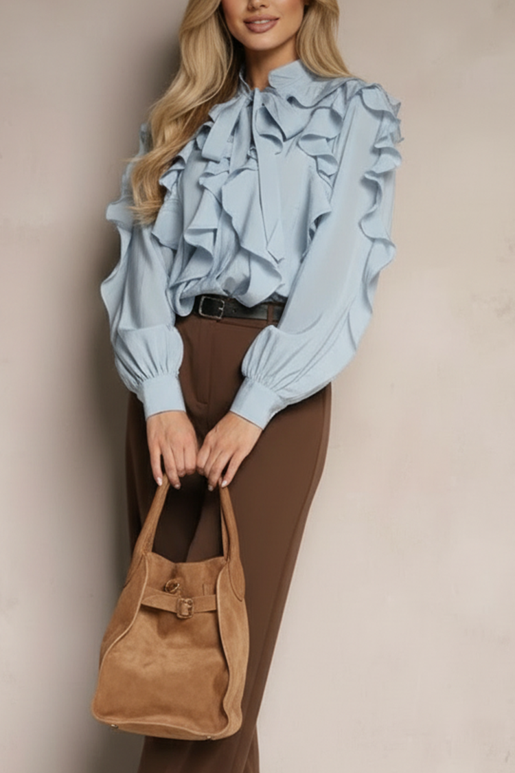 - Modelul are nasturi pe toată lungimea, design elegant și volane spectaculoase.