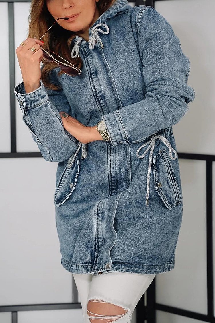 - Pentru un look elegant, alege această geacă din denim, potrivită pentru orice ținută.