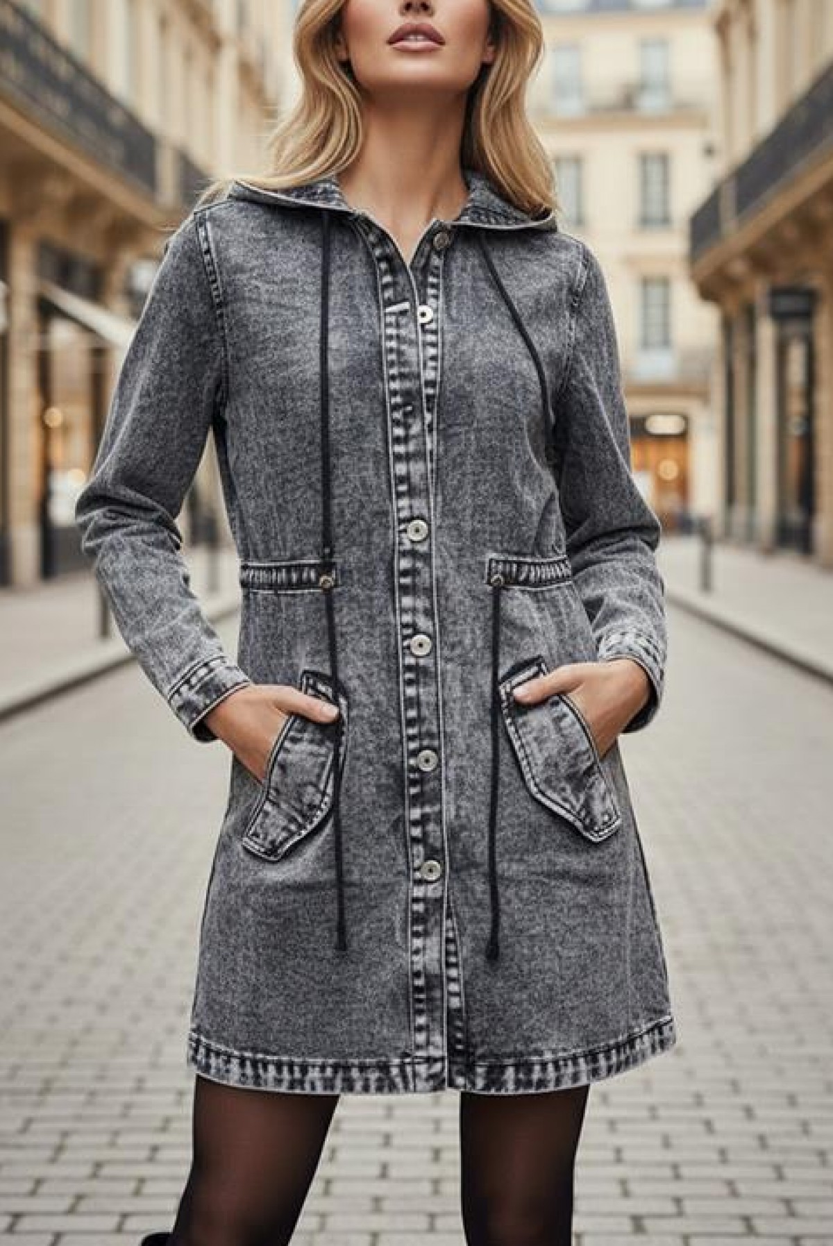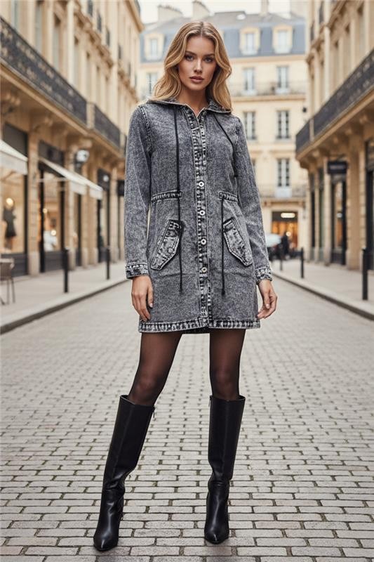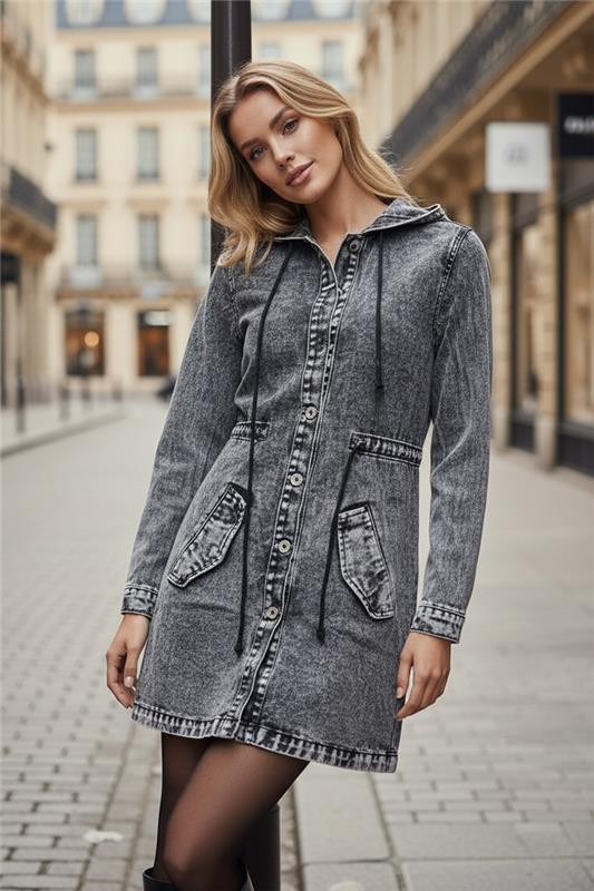 - Pentru un look elegant, alege această geacă din denim, potrivită pentru orice ținută.