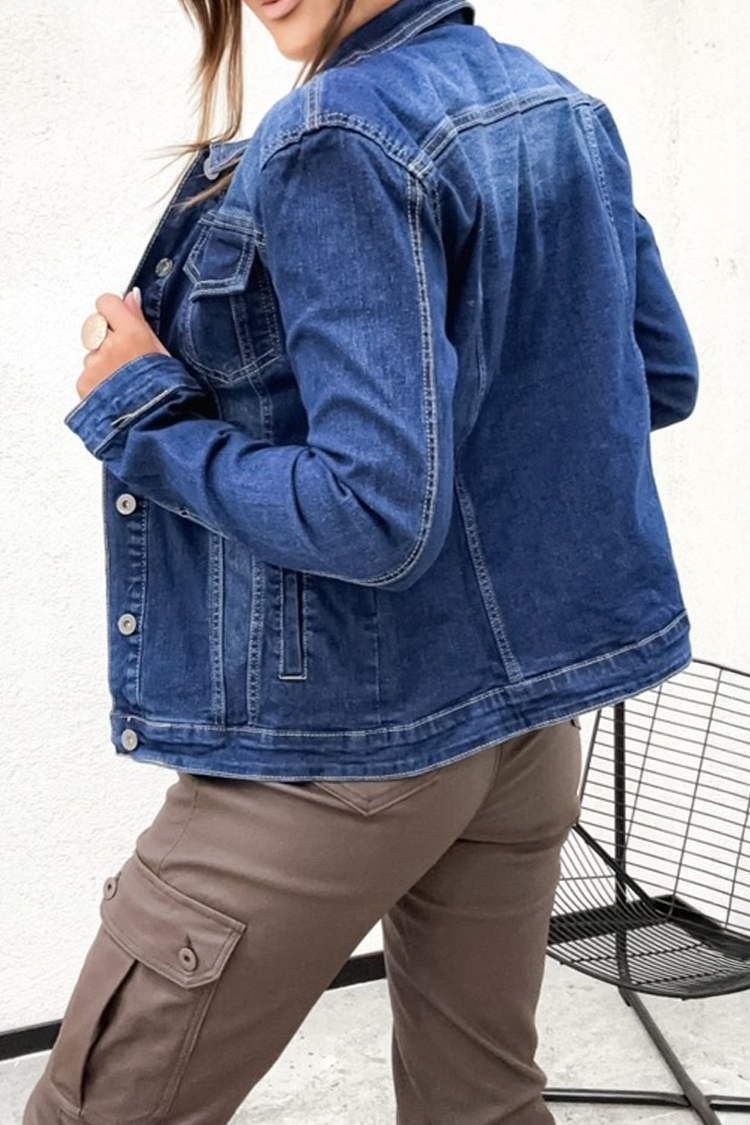 - Pentru un look elegant, alege această geacă din denim, potrivită pentru orice look.