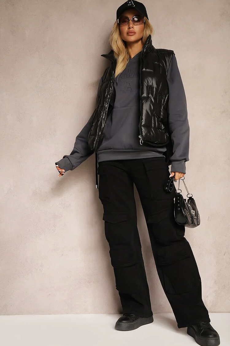 - Vesta are o croială clasică, guler confortabil, lungime scurtă și design matlasat.