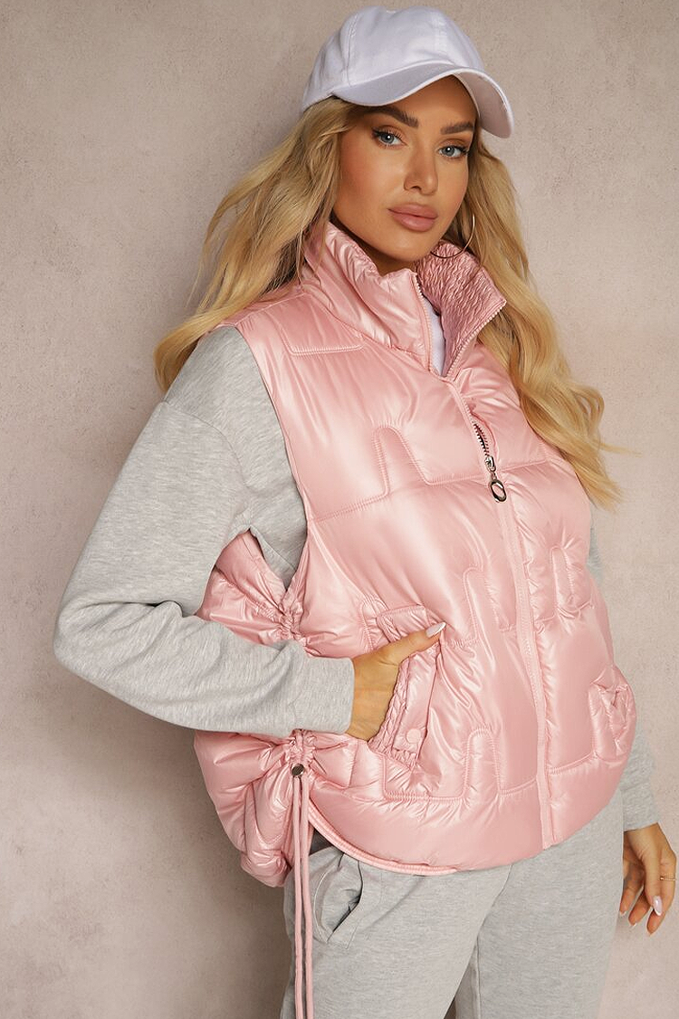 - Vesta are o croială clasică, guler confortabil, lungime scurtă și design matlasat.