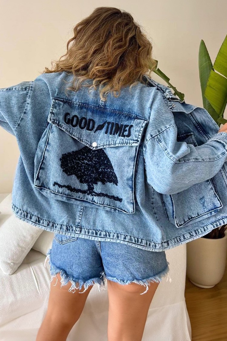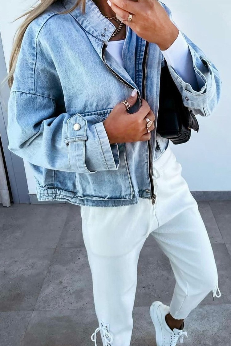 - Pentru un look elegant, alege această geacă din denim, potrivită pentru orice look.