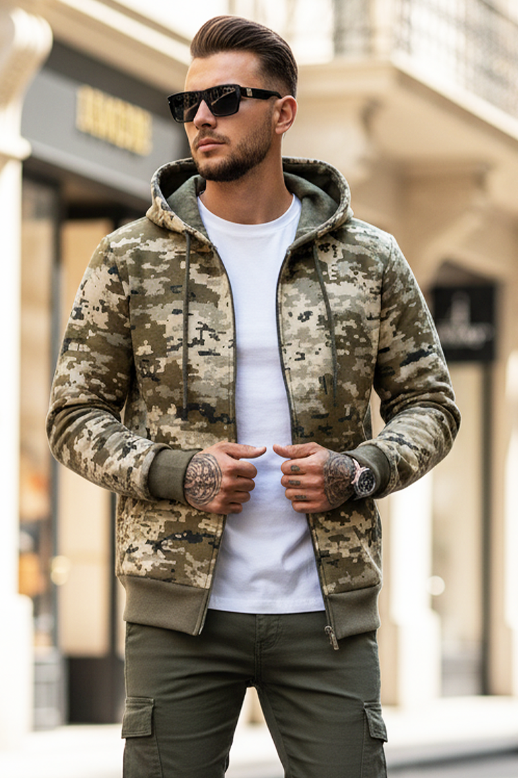 - Hanorac pentru bărbăti confortabil și modern, cu design camuflaj și buzunare, potrivit pentru viata de zi cu zi sau plimbare.