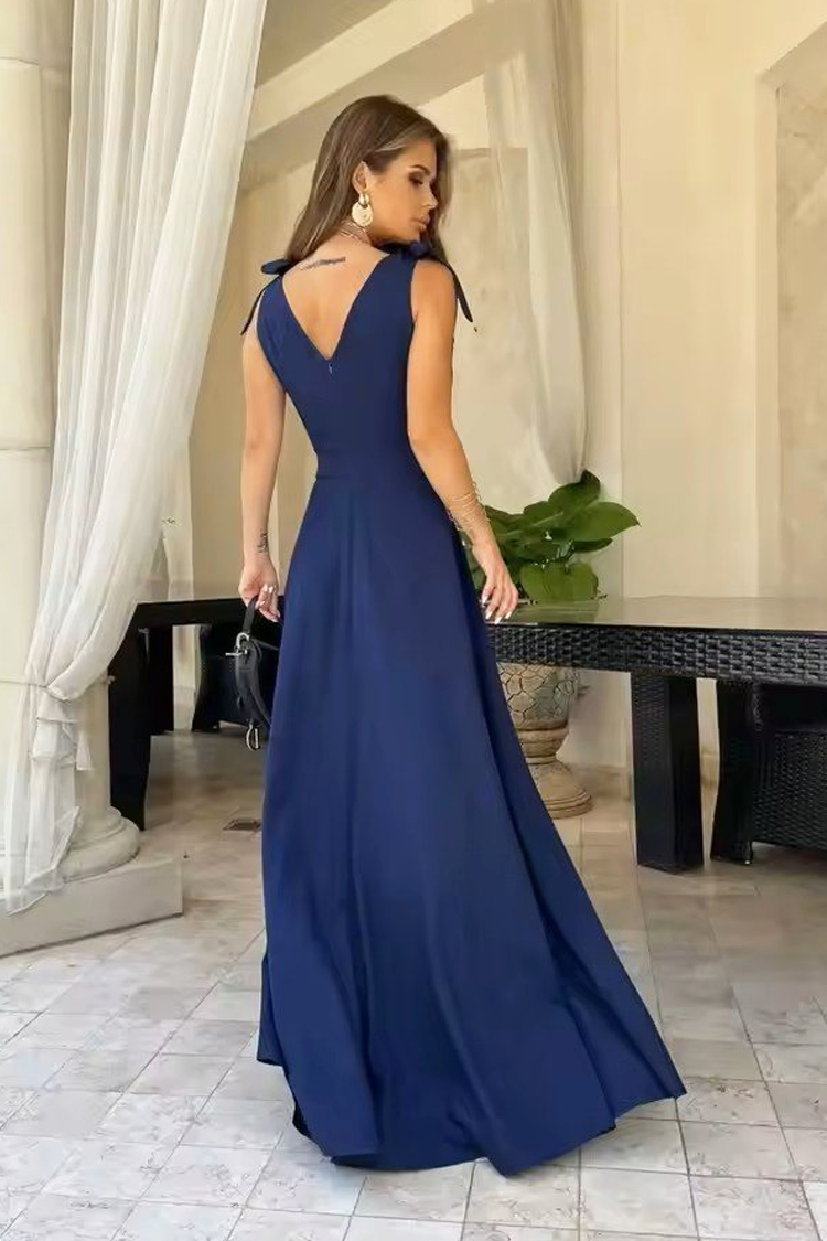 - Pentru a atrage toate privirile, alege această rochie lungă cu un design incredibil, într-o culoare clasică.
