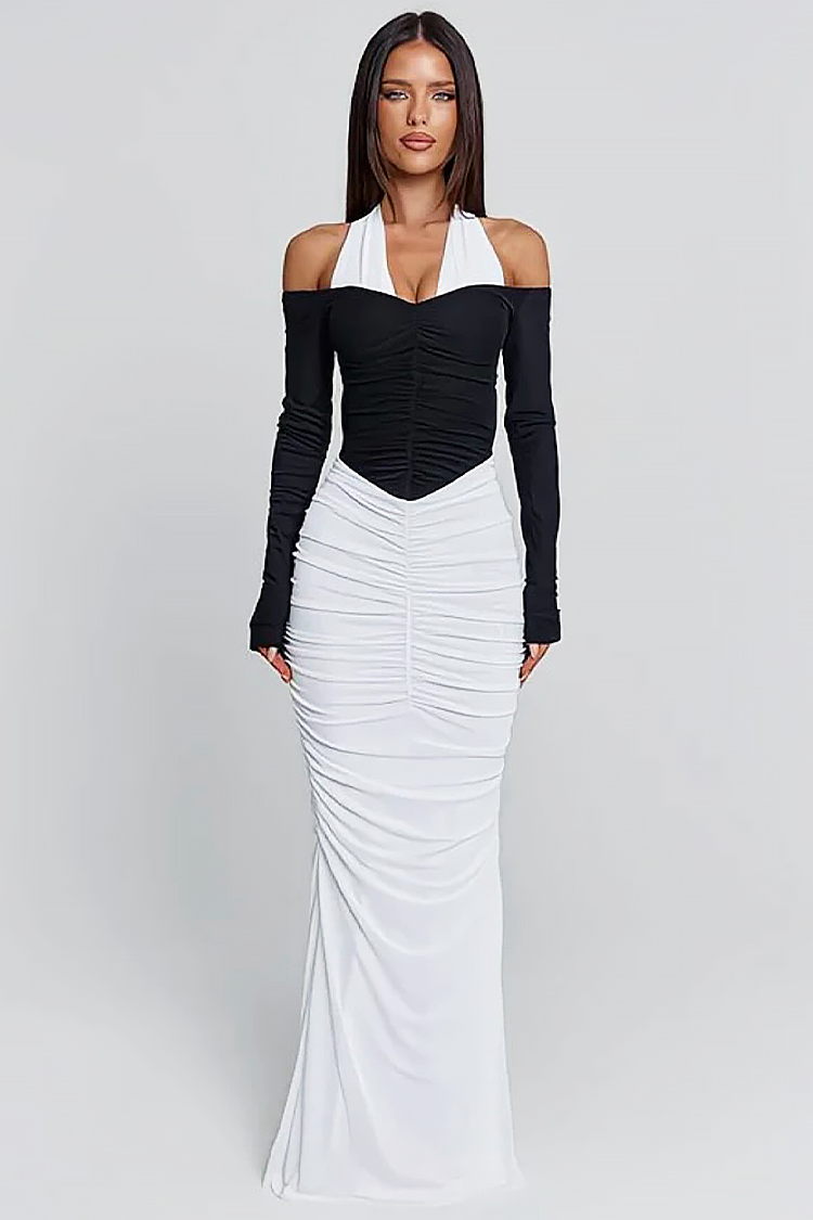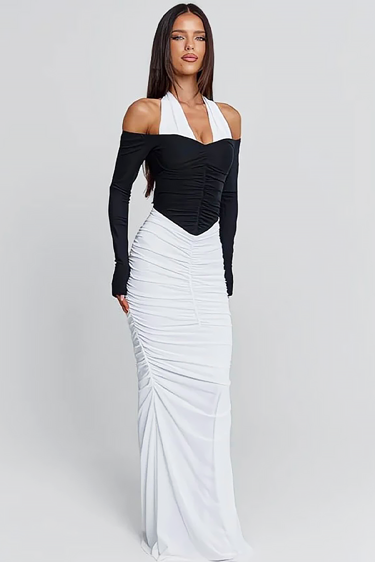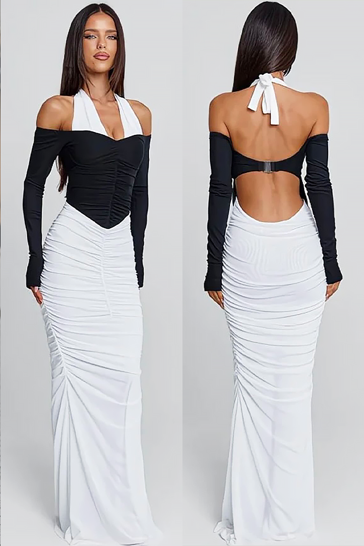 - Pentru a atrage toate privirile, alege această rochie cu un design incredibil în alb și negru.