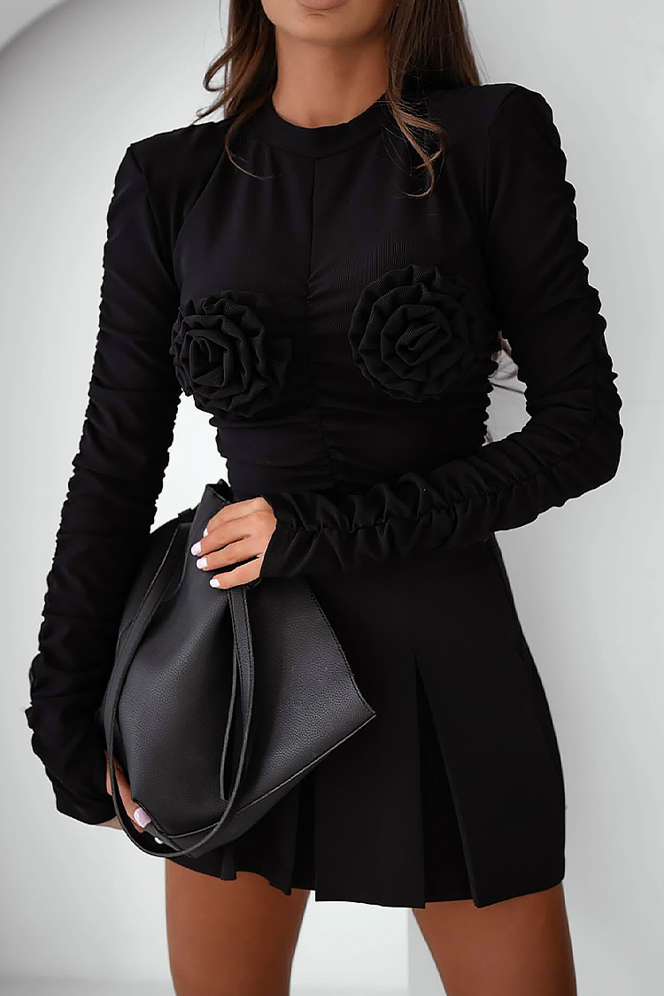 - Modelul are mâneci îngrijite, un decolteu sexy, o croială mulată și flori decorative.
