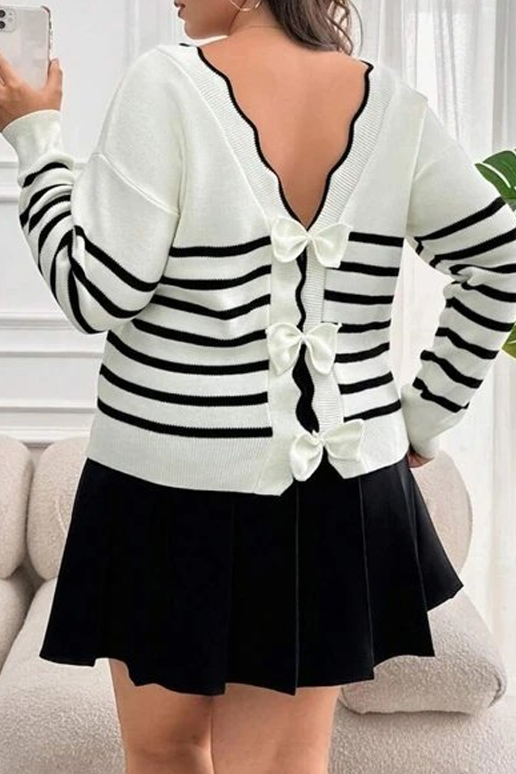 - Modelul are o croială lejeră, panglici atrăgătoare pe spate și detalii negre.